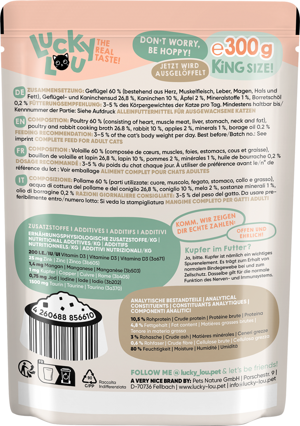 Lucky Lou Lifestage Pouch Adult s drůbežím a králičím masem, 300 g 55,96 Kč (186,53 Kč / kg)