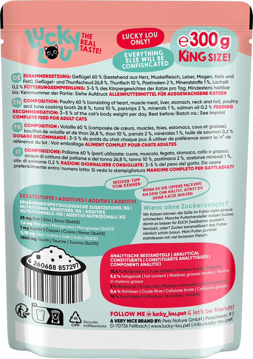 hodnocení pro Lucky Lou Lifestage Pouch Adult s drůbežím masem a tuňákem (čeština)