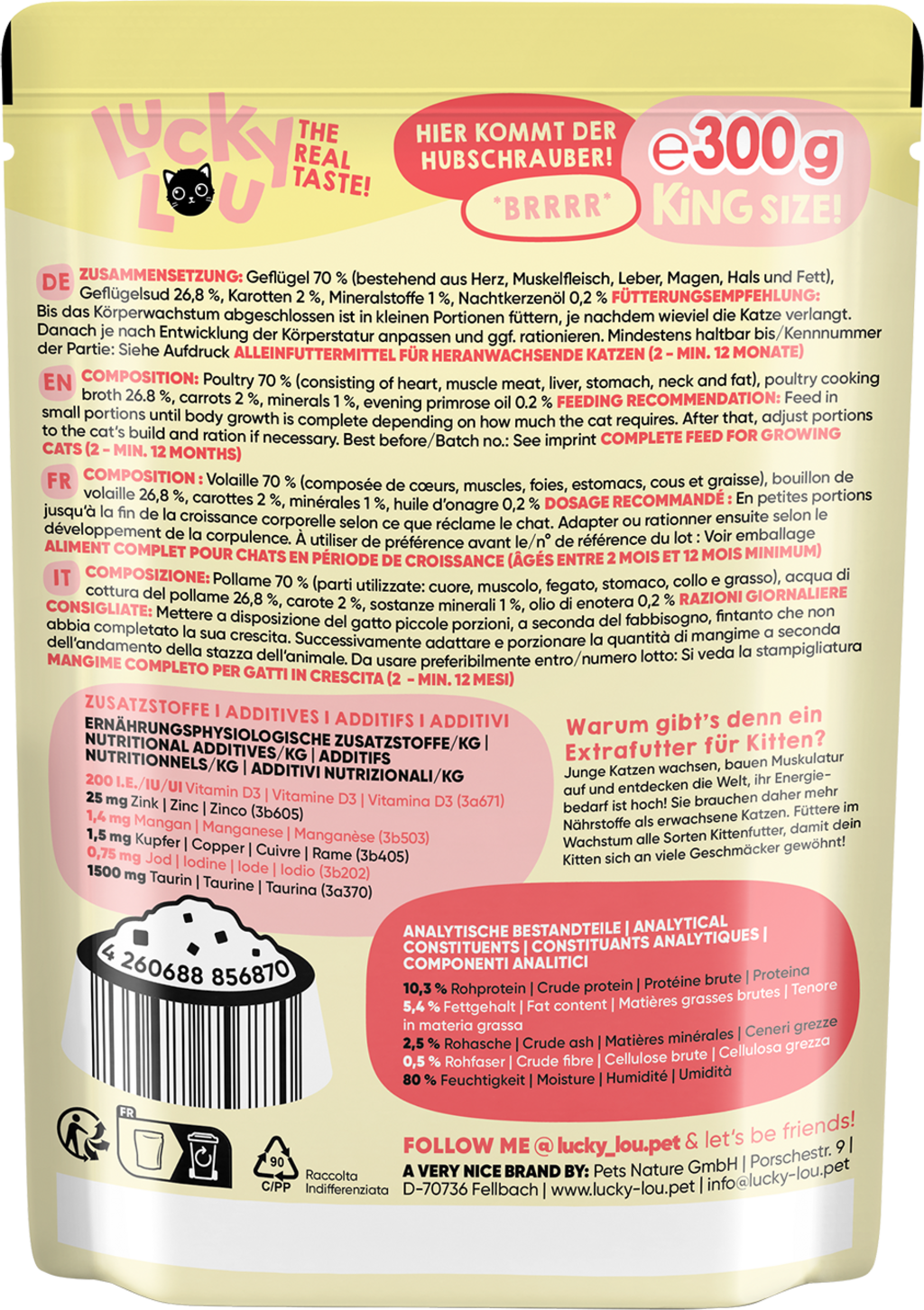 Lucky Lou Lifestage Pouch Kitten s drůbežím masem, 300 g