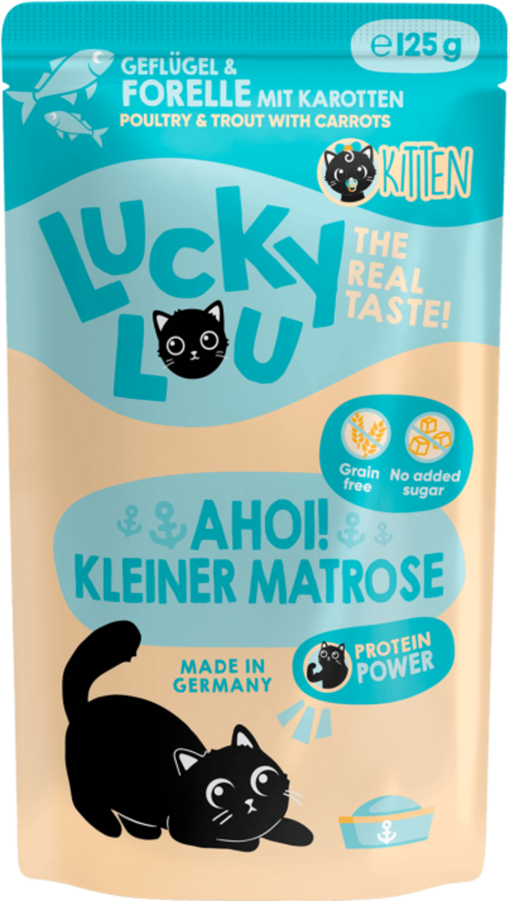 Lucky Lou Lifestage Pouch Kitten s drůbežím masem a pstruhem, 125 g