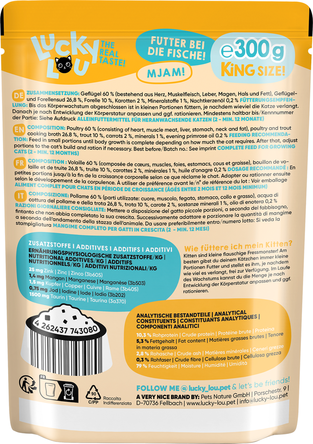 Lucky Lou Lifestage Pouch Kitten s drůbežím masem a pstruhem, 300 g