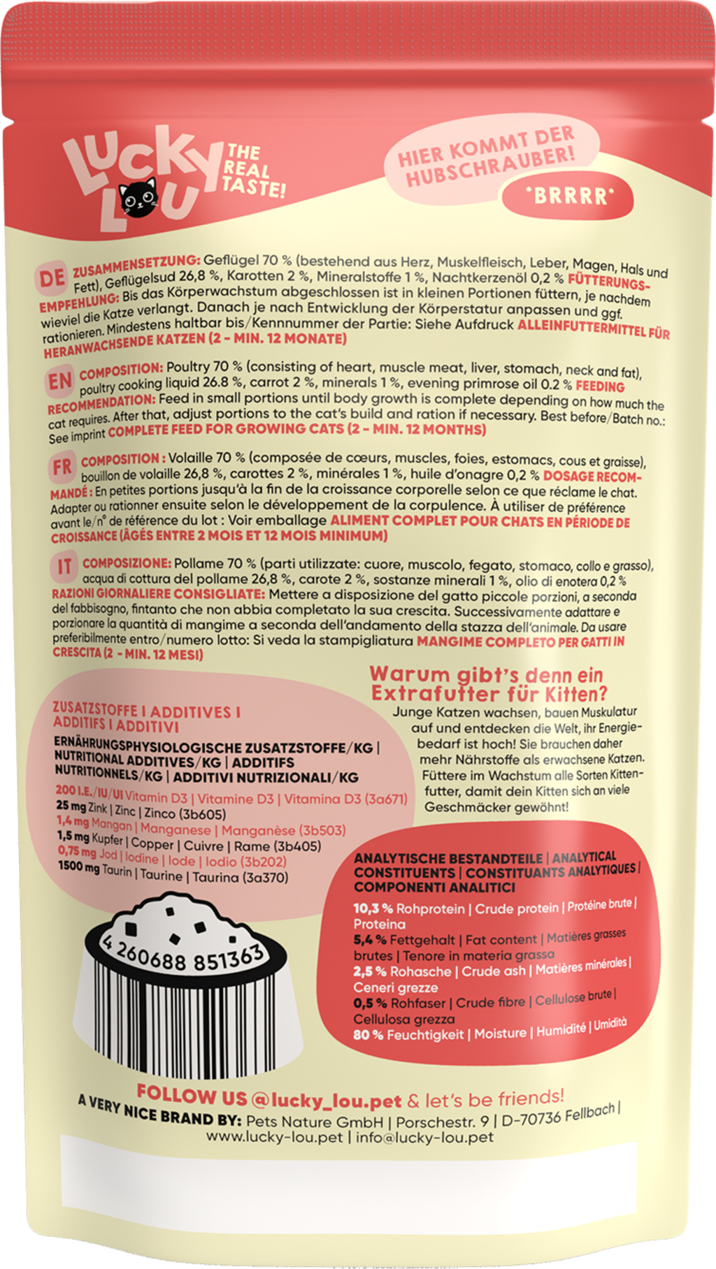 hodnocení pro Lucky Lou Lifestage Pouch Kitten s drůbežím masem (čeština)