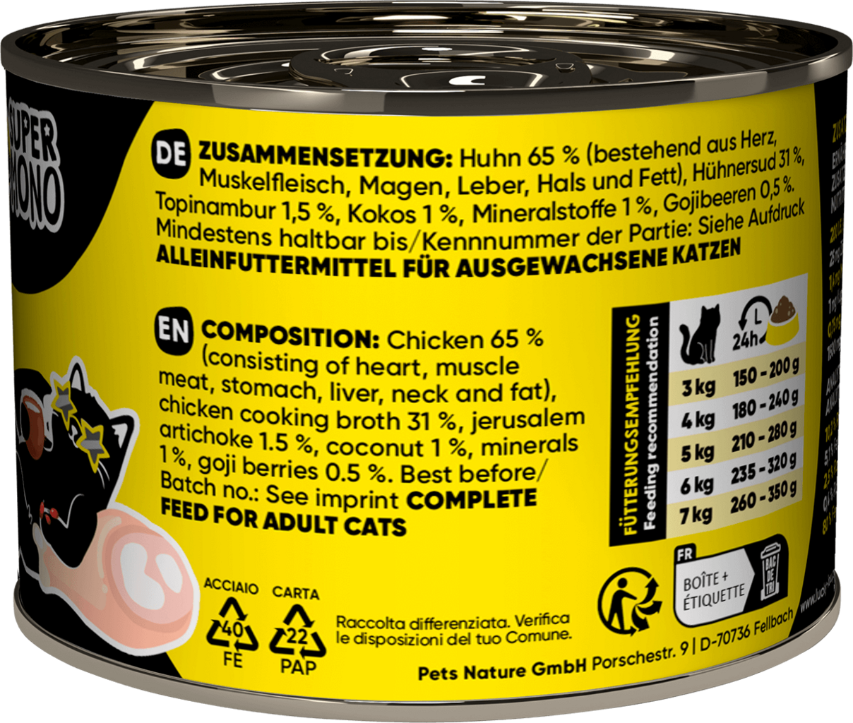 Zažijte sílu SuperMono! V tomto jedinečném mokrém krmivu se skrývá veškerá síla superpotravin, jako jsou brusinky, rakytník a šanta kočičí, a také monoprotein, takže si na něm mohou opravdu pochutnat i kočky se zvláštními nutričními potřebami. Celé to samozřejmě také skvěle chutná, protože „super“ zde není jen složení, ale i samotná chuť.