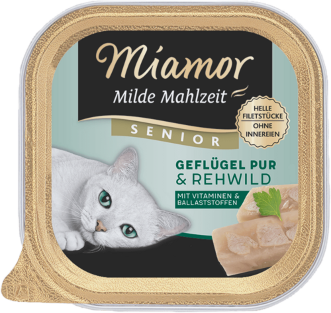 Miamor - Milde Mahlzeit je díky přídavku drůbežího masa lehce stravitelný pokrm, a proto je ideální pro starší kočky, které mají sklon k nadváze a nedostatku pohybu. Šetrně připravené krmivo obohacené o cenné vitamíny a vlákninu podporuje zdraví a vitalitu Vaší kočky.