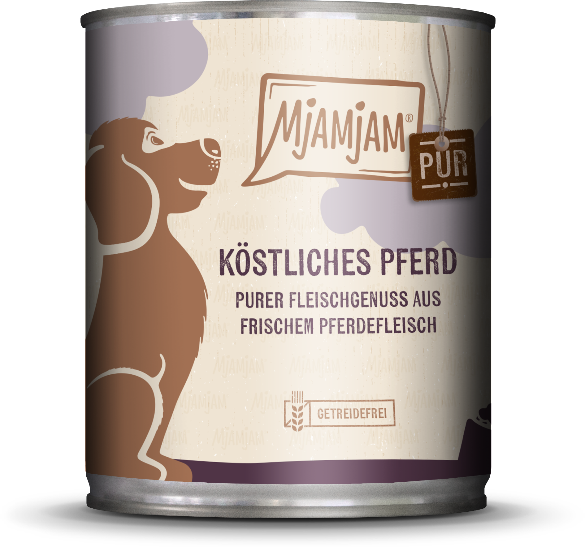 Mjamjam - mokré krmivo hýčká Vašeho psa bohatou chutí, nesrovnatelnou kvalitou a špetkou lásky. Koňské maso jako jediný zdroj bílkovin zaručeně roztančí chuťové pohárky Vašeho čtyřnohého přítele a poskytne mu hodnotné, druhově odpovídající krmivo. Aby Vašemu miláčkovi nic nechybělo.
