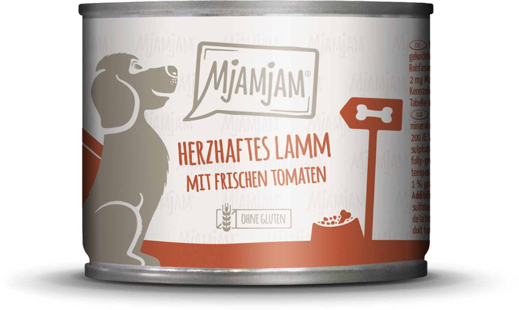 Mjamjam - mokré krmivo hýčká Vašeho psa bohatou chutí, nesrovnatelnou kvalitou a špetkou lásky. Vašeho psa čeká plnohodnotné jídlo z křehkého jehněčího masa, chutné rýže a čerstvých rajčat. Aby Vašemu miláčkovi nic nechybělo.