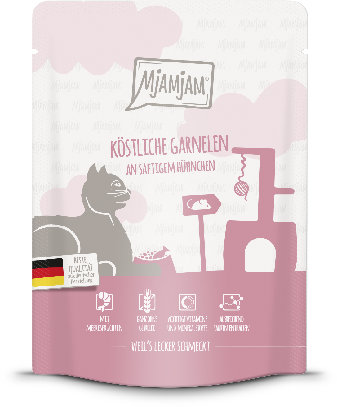 Mjamjam - kapsičky hýčkají Vaši kočku bohatou chutí, nesrovnatelnou kvalitou a špetkou lásky. Vaši kočku čeká plnohodnotné jídlo z čerstvých krevet a šťavnatého kuřecího masa. Navíc obsahuje taurin, který je pro kočky nezbytný. Aby Vašemu miláčkovi nic nechybělo.