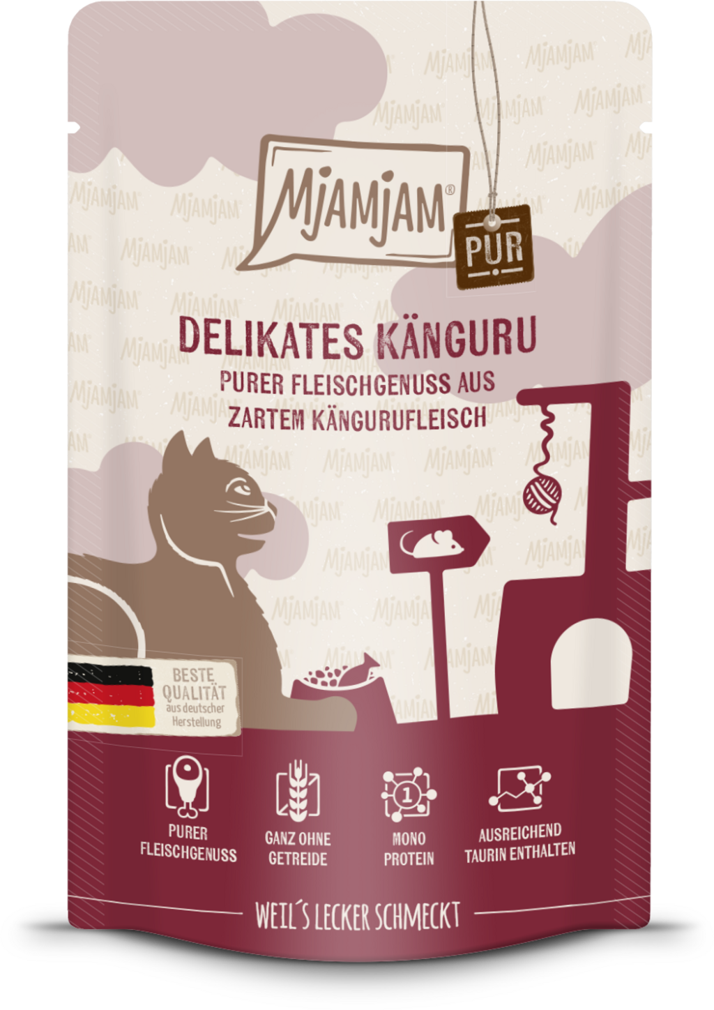 To, že se v kapsičkách Mjamjam skrývá neuvěřitelné množství lásky, poznáte už na první pohled na obal. A co teprve ten obsah s vysokým podílem masa! 100% čerstvé a křehké klokaní maso roztančí chuťové pohárky Vaší kočky a poskytne jí hodnotné a druhově vhodné jídlo.