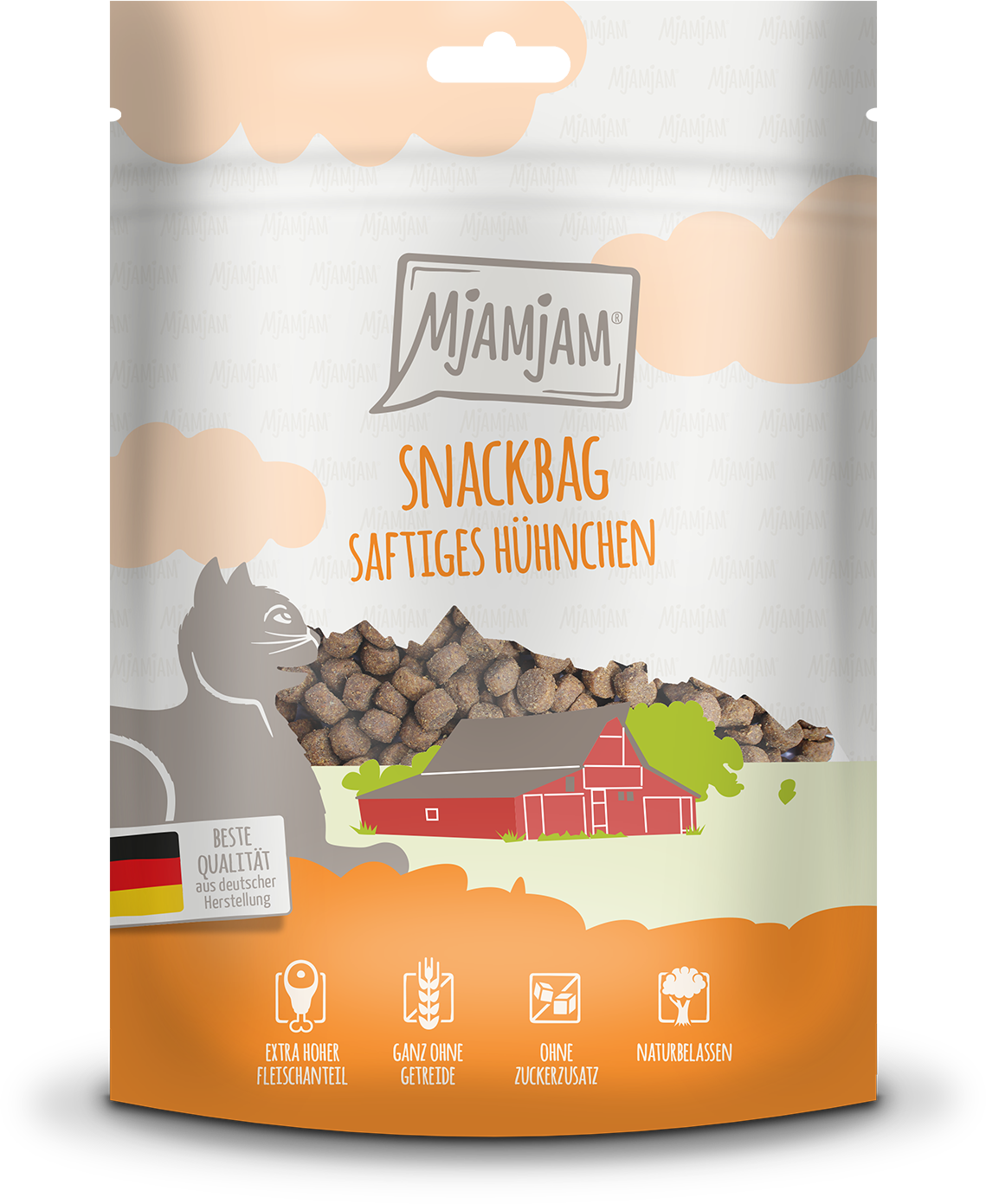 Ať už jako odměna za dobré chování, pro zabavení nebo prostě jako důkaz lásky – pamlsky Mjamjam Snackbag jsou ideální pro hýčkání Vaší kočky. Jsou vyrobeny z vysoce kvalitních surovin, bez přidaných obilovin a cukru, a představují tak přirozenou a zdravou odměnu mezi jídly.