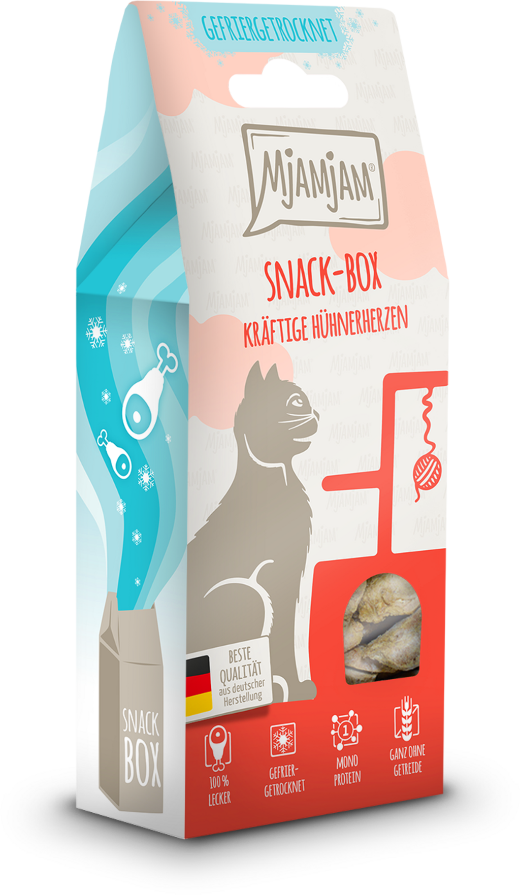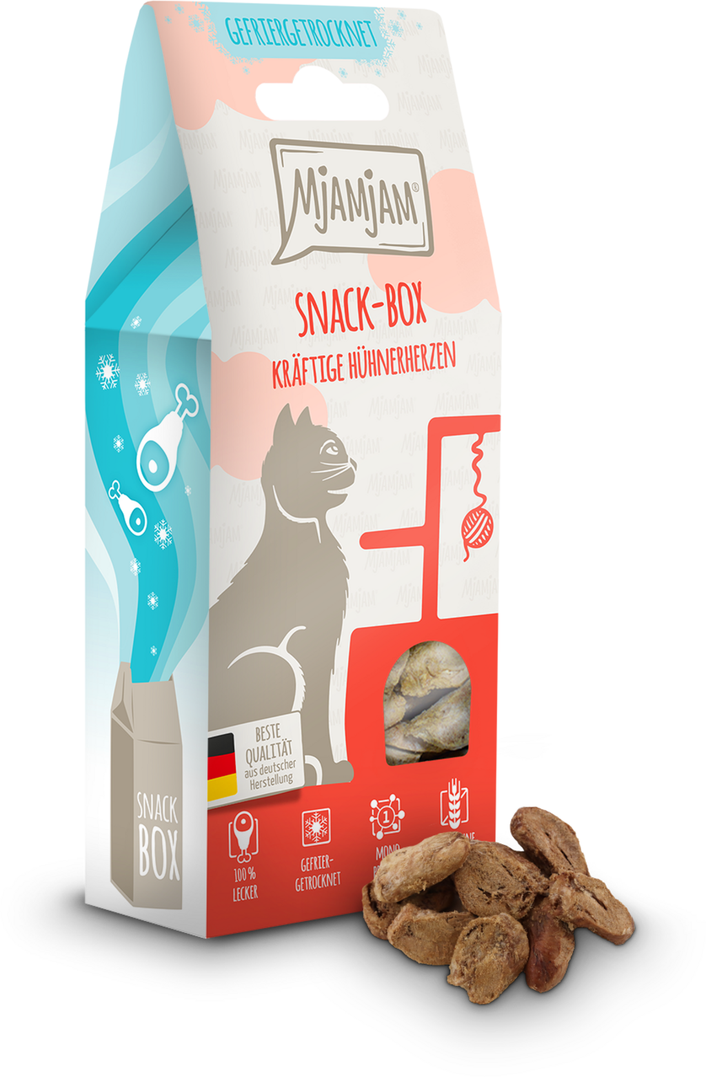 Pamlsky z Mjamjam Snackbox jsou dokonalou odměnou pro Vaši kočku a ideálním způsobem, jak rozmazlovat Vašeho miláčka. S delikátními kuřecími srdci, šetrně sušenými mrazem, nabízí Snackbox přírodní pochoutku, která Vaši kočku nadchne.