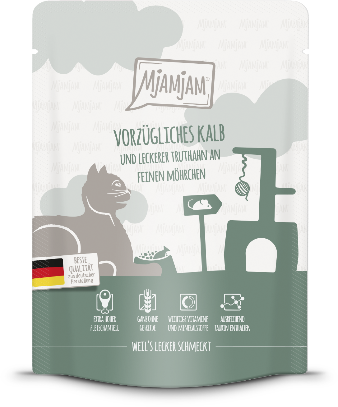 To, že v Mjamjam a kapsičkách se skrývá neuvěřitelné množství lásky, poznáte už na první pohled na obal. A co teprve ten obsah s vysokým podílem masa! Čerstvé telecí maso harmonizuje se šťavnatým krůtím masem a křupavou mrkví a roztančí chuťové pohárky Vaší kočky! Protože Váš miláček si zaslouží přírodní jídla v prémiové kvalitě!