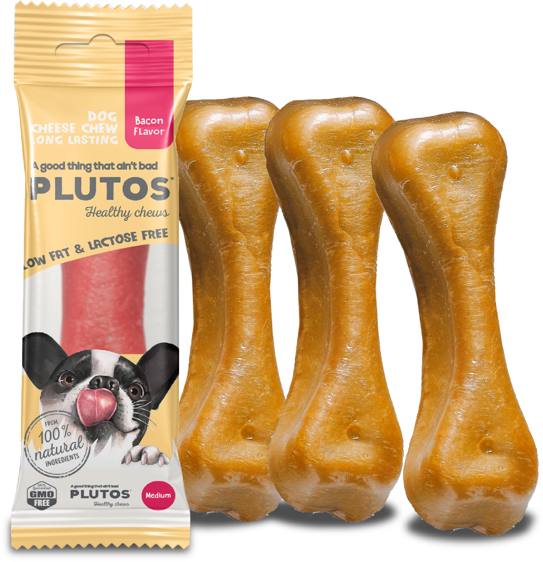 Plutos Sýrová žvýkací kost - sýr a slanina, M (60 g)