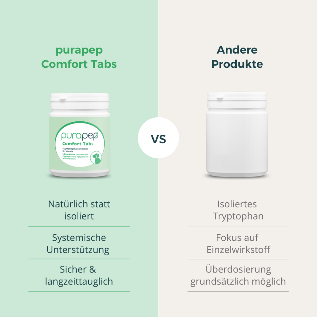 Comfort tablety pro psy od značky purapep jsou vysoce kvalitní doplňkové krmivo ve formě tablet, které bylo vyvinuto, aby psům nabízelo přirozenou podporu ve stresových situacích i při každodenních výzvách.