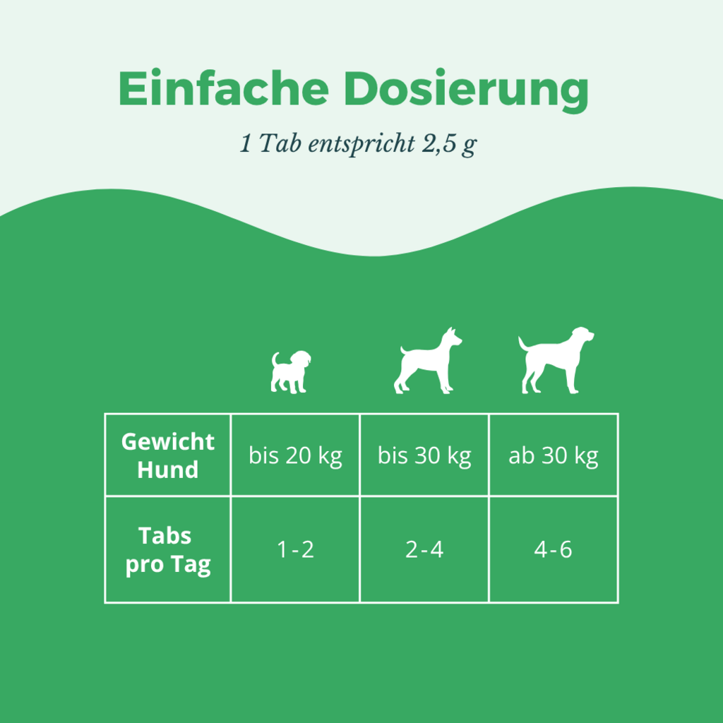 • Na začátku podávejte prosím pouze polovinu doporučené denní dávky, abyste se ujistili, že Váš miláček tablety snáší.