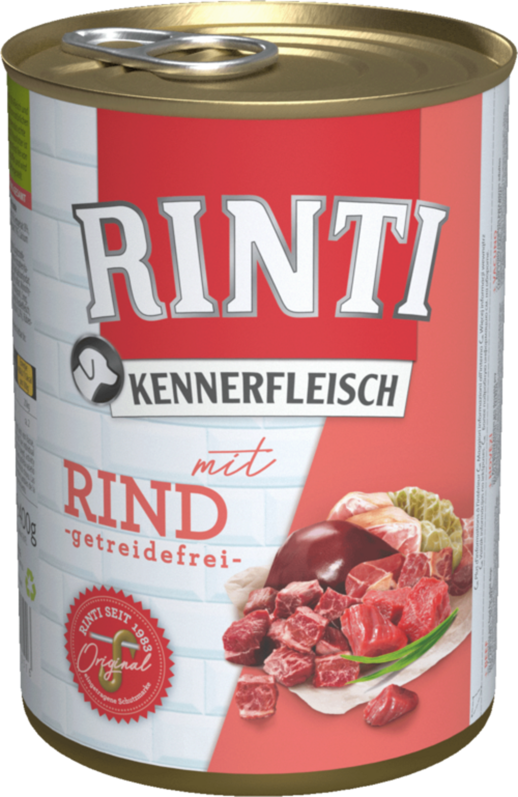 Díky vynikající masové chuti si Váš čtyřnohý přítel krmivo Rinti Kennerfleisch zamiluje!