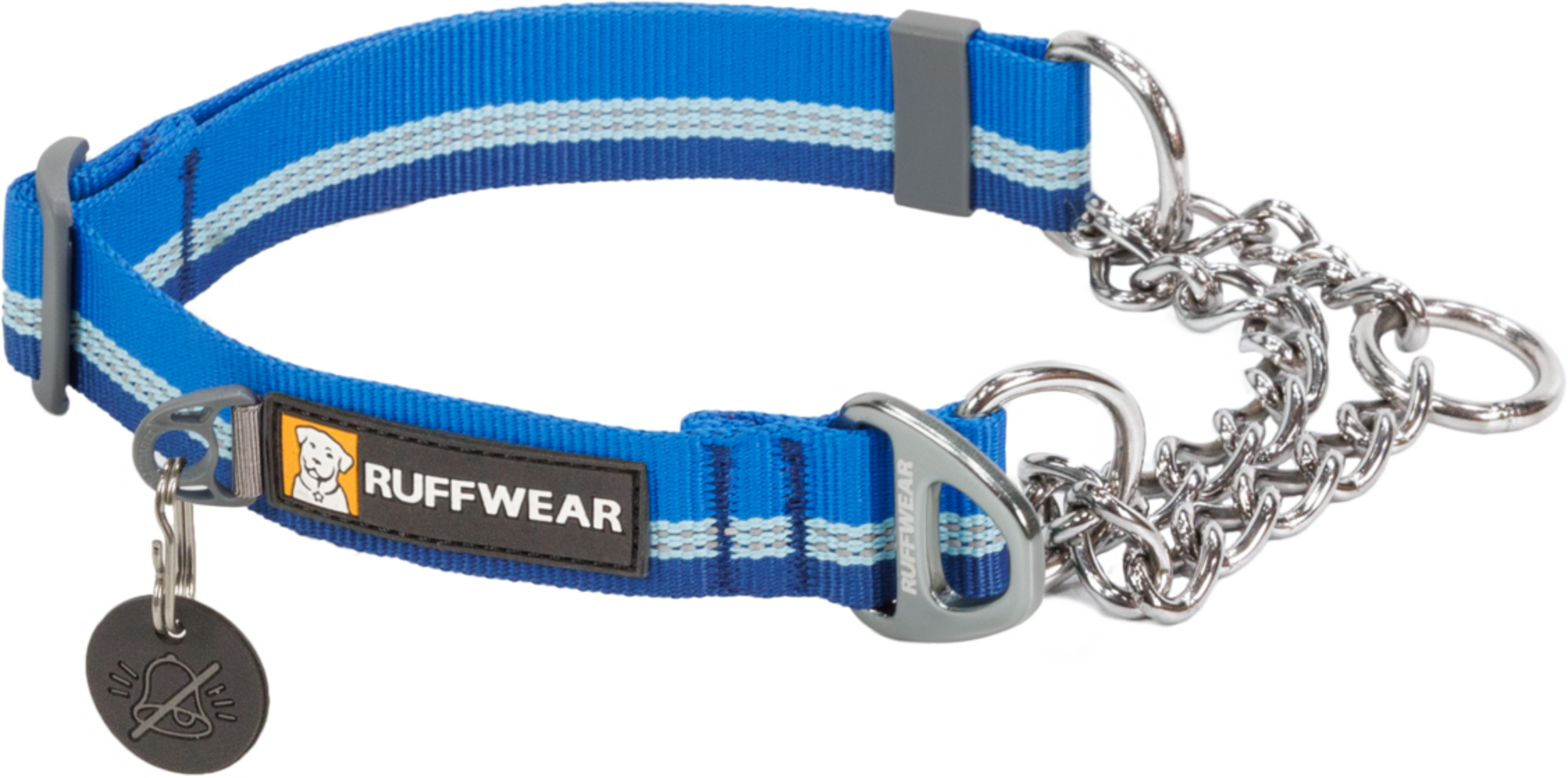 Psí obojek Chain Reaction od Ruffwear kombinuje metodu Martingale obojků s krátkým řetízkem: Tato speciální verze umožňuje ještě větší kontrolu, resp. korekci při tréninku chůze na vodítku, zároveň je obzvláště šetrný, neškrtí a přesto znemožňuje vyvléknutí.