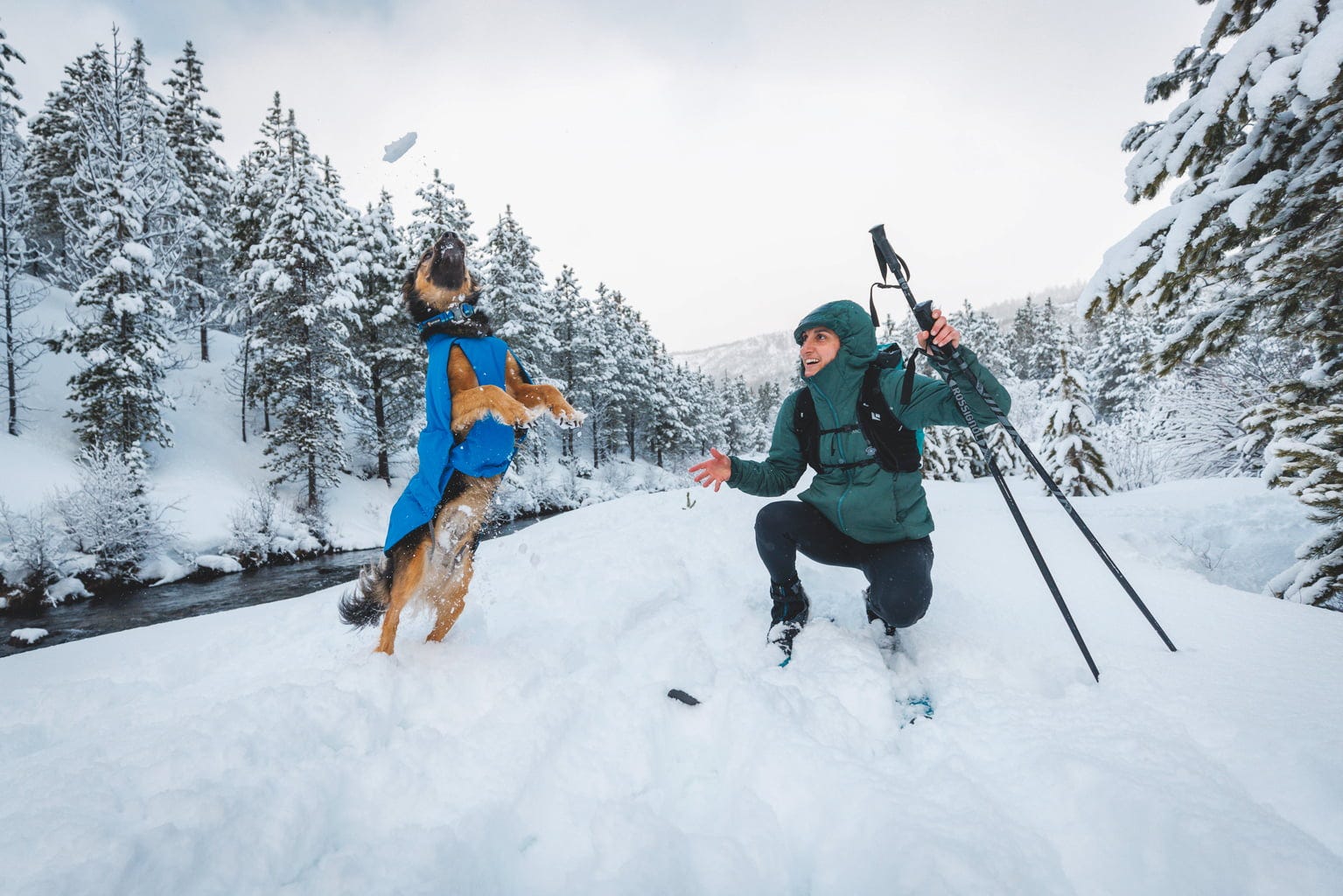 Zimní teploty mohou být opravdu nízké a často nás přimějí zůstat raději v teple domova. Stejně to má i nejeden pes. Přesto ale psi potřebují pohyb a čerstvý vzduch. S prodyšnou, voděodolnou a větruodolnou bundou Vert Jacket od Ruffwear můžete zimě čelit společně a užít si krásné chvíle venku bez ohledu na počasí.