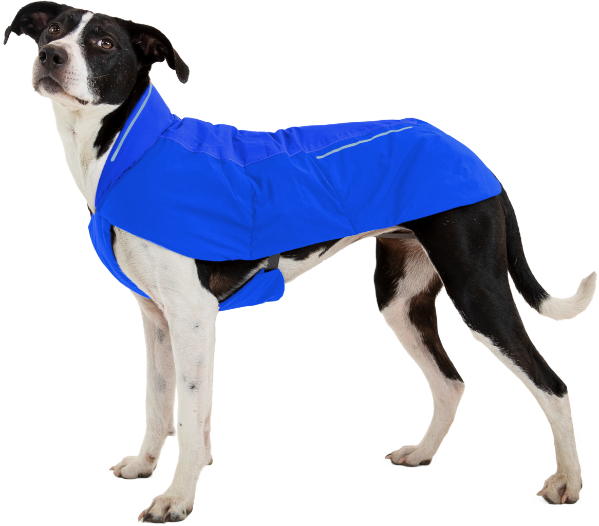 Tato hřejivá bunda má výplň z recyklovaného polyesteru, která spolehlivě zadržuje teplo. Speciální voděodolné panely v oblasti boků a stehen chrání teplo těla Vašeho psa před vlhkostí zvenčí. Integrované pásky na zadní nohy drží bundu bezpečně na místě i ve větru a nedovolí chladu proniknout k tělu. Velký límec navíc slouží jako dodatečná ochrana před silným větrem.