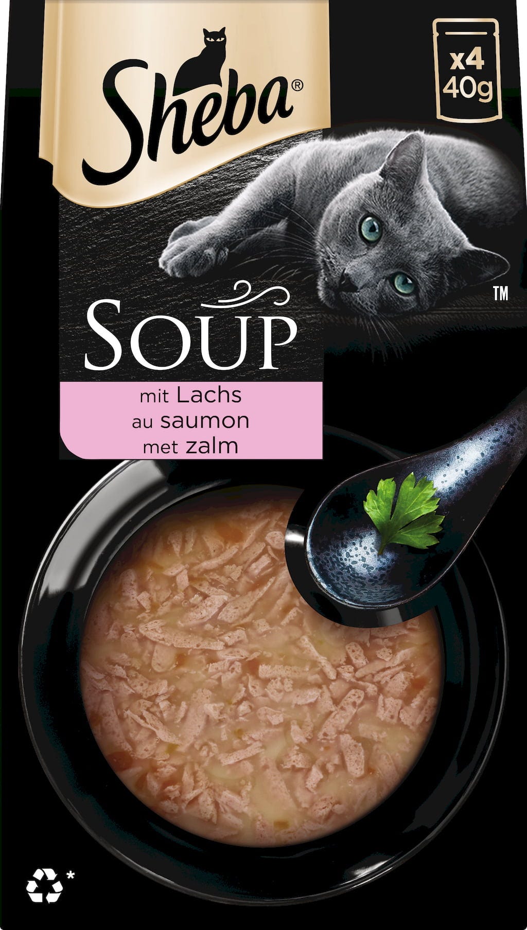 - Dejte Vaší kočce Sheba® Classic Soup jako doplňkové krmivo pro rozmazlování