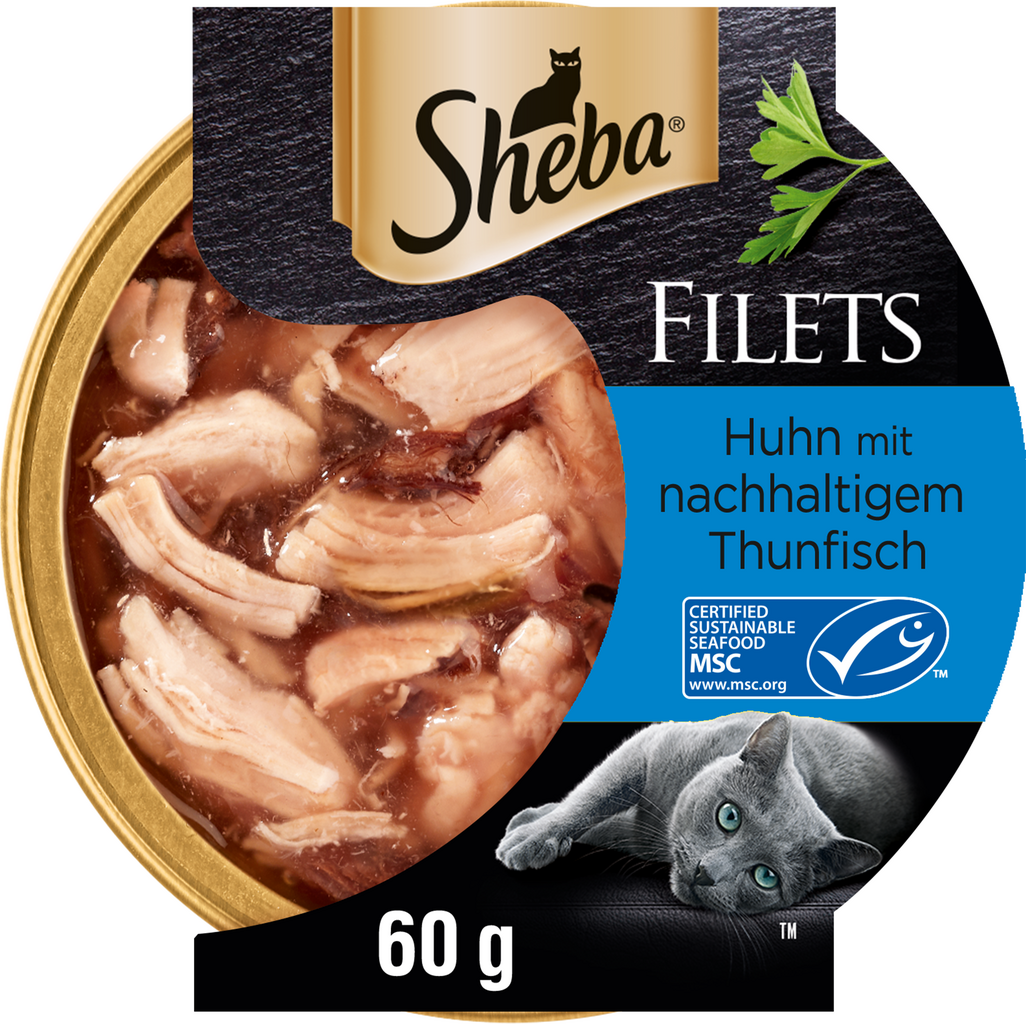 Exkluzivní receptura Sheba Filets se skládá z něžných filetů vložených do neodolatelně lahodné omáčky. Jedinečná kombinace, která přesvědčí i ty nejnáročnější kočky!