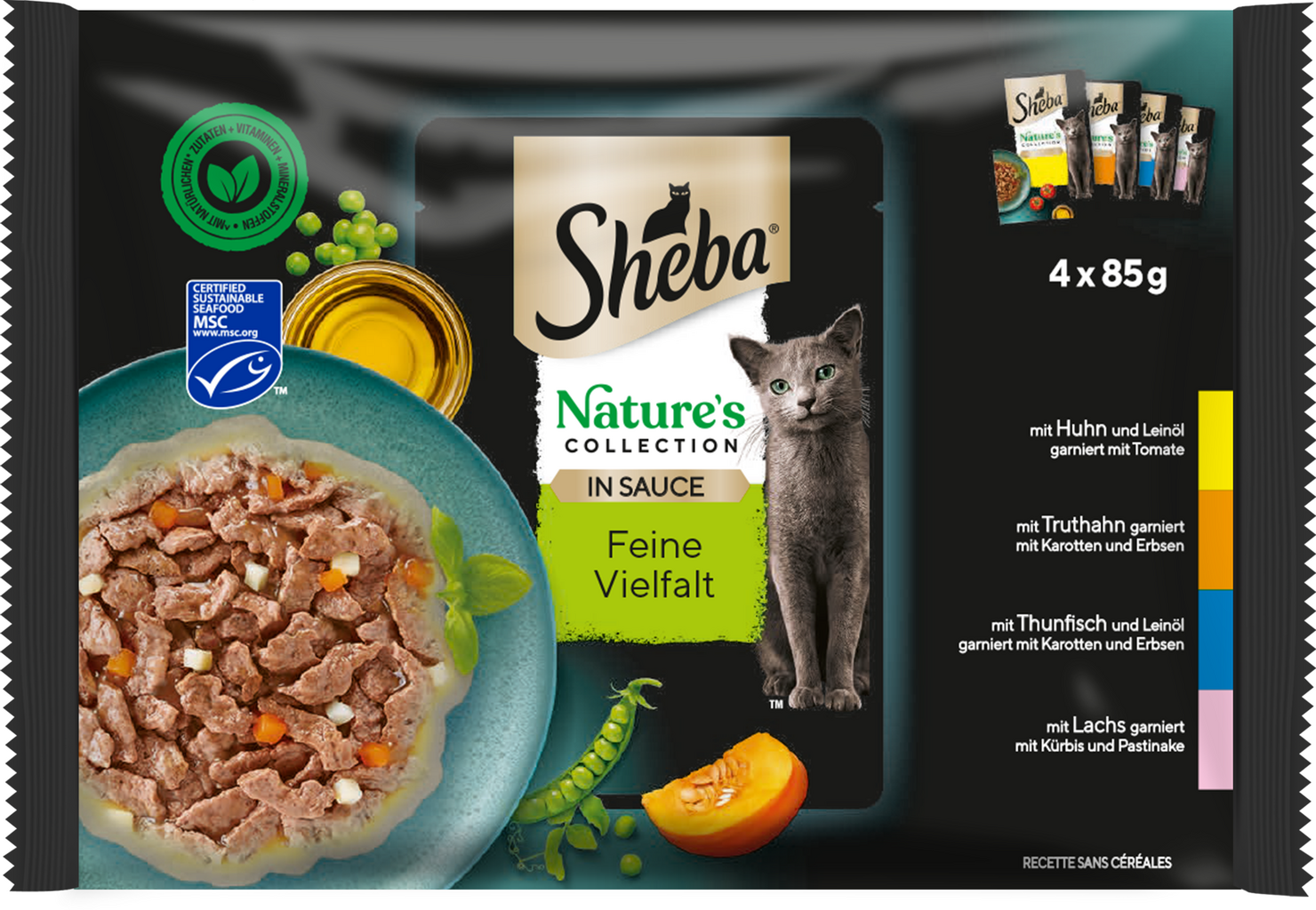 Objevte umění kulinářského pokušení s exkluzivními pokrmy z Sheba Nature's Collection: Každé jídlo je gurmánským mistrovským dílem z vybraných přírodních ingrediencí v omáčce, bez jakýchkoliv barviv a konzervačních látek!