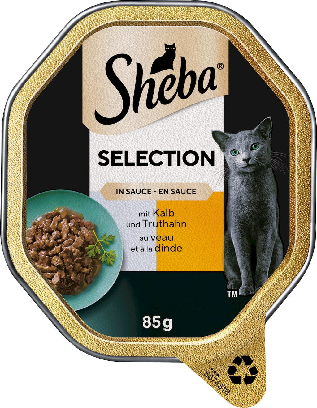 Jemné masové kousky z telecího a krůtího masa, doplněné bohatou aromatickou omáčkou - Sheba Selection vyláká kočku i z toho nejútulnějšího koutku. Vysoce kvalitní a šetrně připravené suroviny bez přídavku umělých barviv, aromat a konzervantů přesvědčí na celé čáře. Miska s 85 g se snadno otevře a je možné ji recyklovat.
