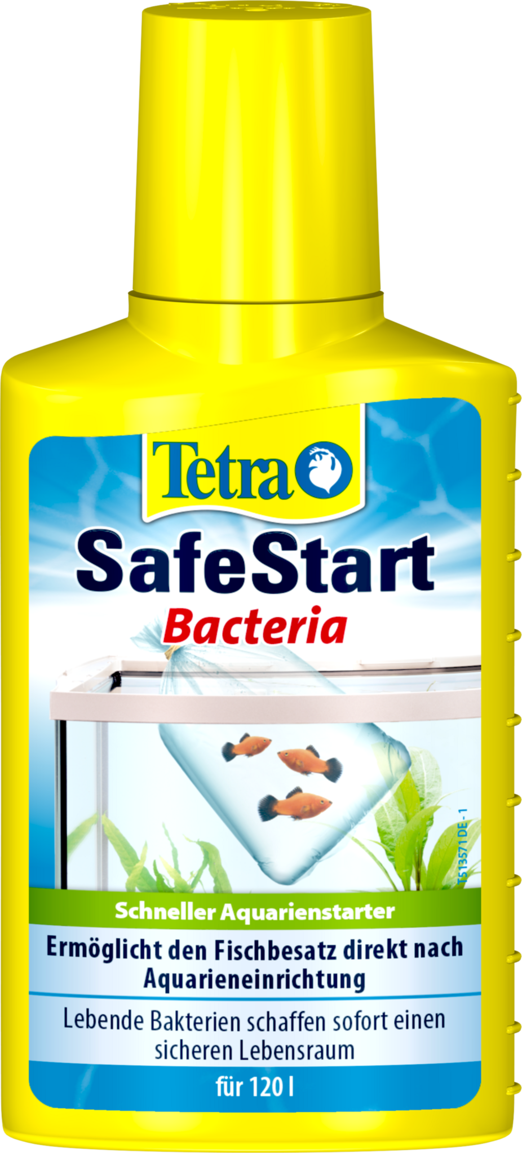 Pokud není voda v akváriu biologicky filtrována, amoniak vznikající při rozkladu bílkovin se mění na toxický amoniak a dusitany, které jsou pro ryby škodlivé. Speciálně vyšlechtěné živé bakterie v přípravku SafeStart zajišťují bezpečné odbourávání amoniaku a dusitanů a podporují prokazatelně zdravou biologickou aktivitu v akváriu. Obsah amoniaku se sníží až 14krát a obsah dusitanů až 10krát. SafeStart je ideální v kombinaci s přípravkem AquaSafe, který podporuje kolonizaci bakterií. Přípravek je určen pro sladkovodní akvária.