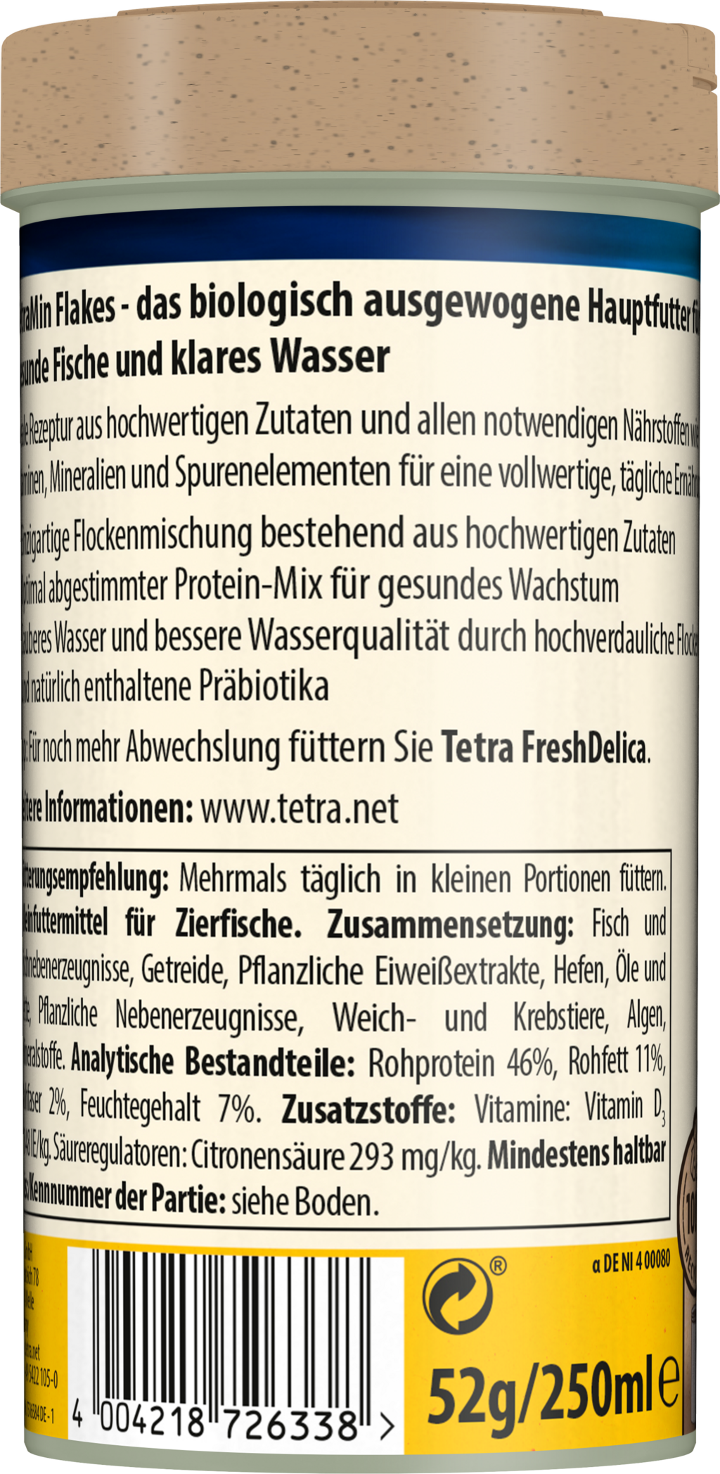 Vločkové krmivo TetraMin obsahuje vysoce kvalitní směs živin s důležitými vitamíny, minerály a stopovými prvky pro vitální život ryb a zářivé barvy. Dodatečně obsažená prebiotika podporují normální tělesné funkce a podporují využití potravy, takže voda v akváriu zůstane po dlouhou dobu čistá.