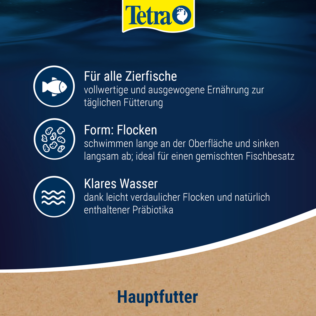 Vločkové krmivo TetraMin obsahuje vysoce kvalitní směs živin s důležitými vitamíny, minerály a stopovými prvky pro vitální život ryb a zářivé barvy. Dodatečně obsažená prebiotika podporují normální tělesné funkce a podporují využití potravy, takže voda v akváriu zůstane po dlouhou dobu čistá.