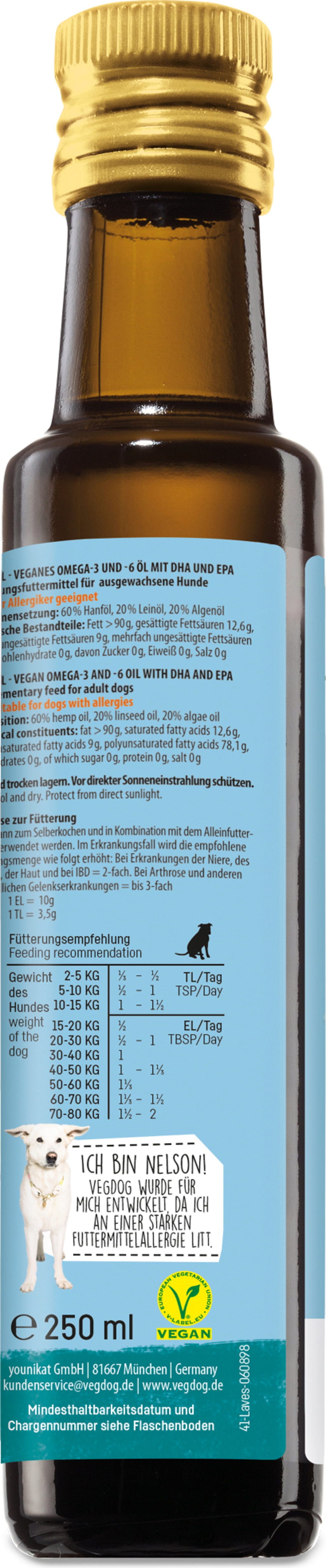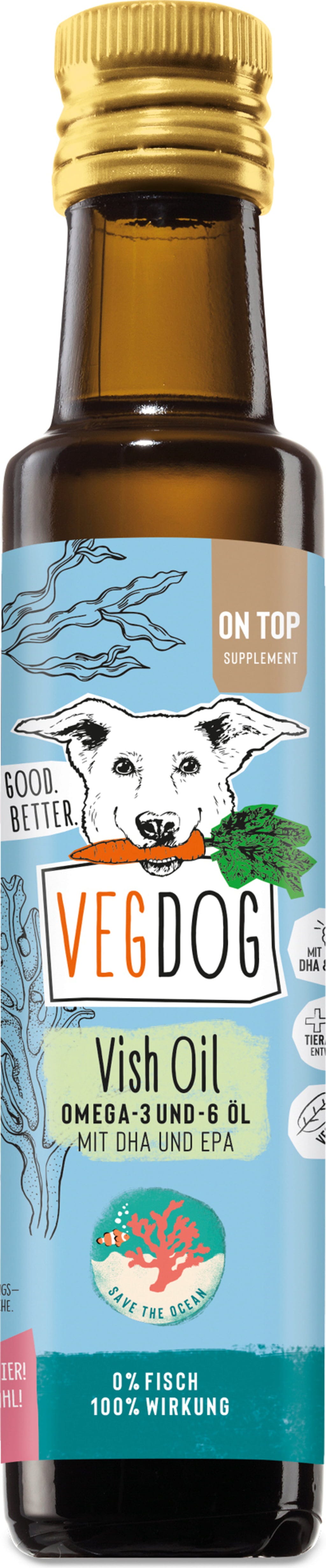 VEGDOG Vish Oil je veganská alternativa k běžně dostupnému rybímu oleji. Místo živočišného zdroje se k výrobě tohoto oleje používají výhradně rostlinné suroviny, jako je konopný, řasový a lněný olej. Ty jsou nejen bohaté na omega-3 a omega-6 mastné kyseliny, ale jsou také mnohem udržitelnější a šetrnější ke zvířatům i životnímu prostředí než rybí olej.