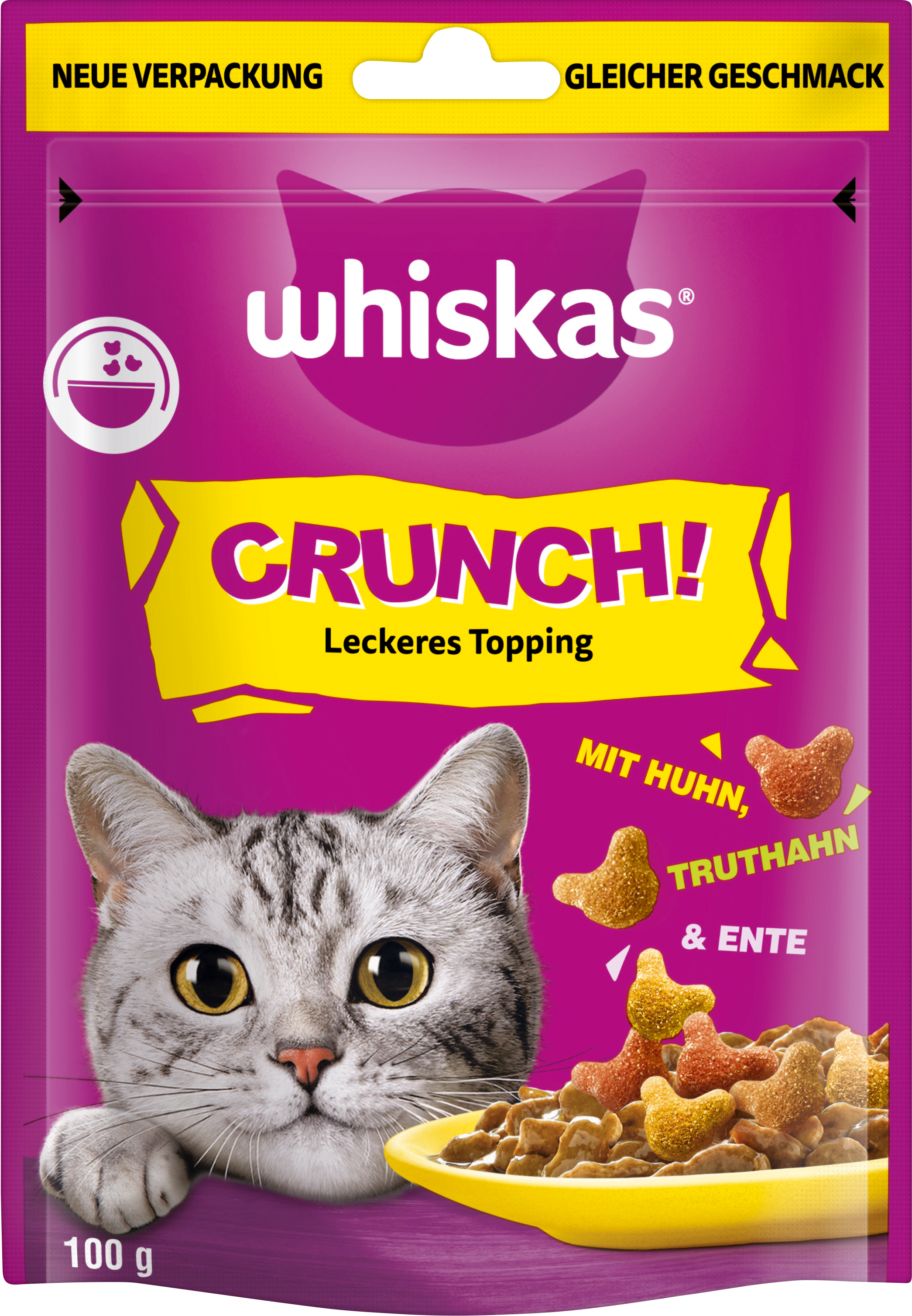 Chcete své kočce udělat opravdu radost? Whiskas Crunch Snack s příchutí kuřete, krůty a kachny nabízí mimořádně křupavý zážitek!