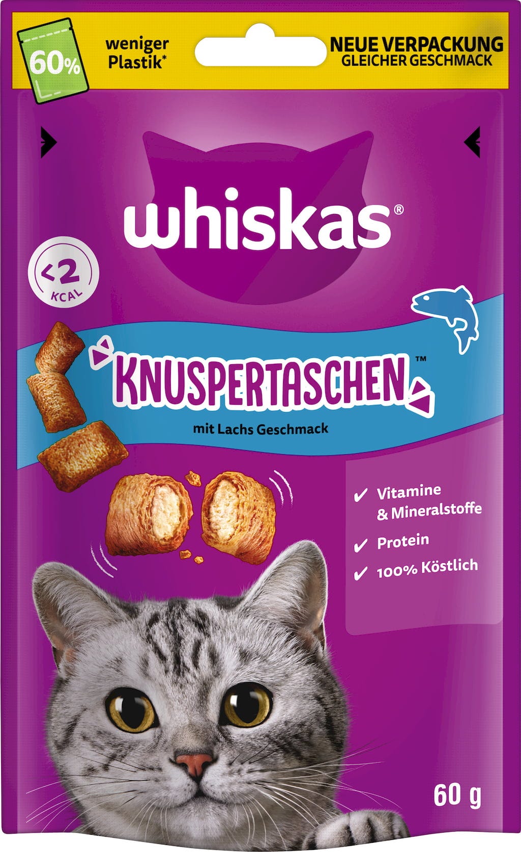 Křupavé kapsičky od Whiskas jsou neodolatelně chutný snack pro zpestření dne! Lahodná kombinace šťavnatého jádra a křupavého obalu přenese Vaši kočku do chuťového nebe a příjemně zpestří její jídelníček.