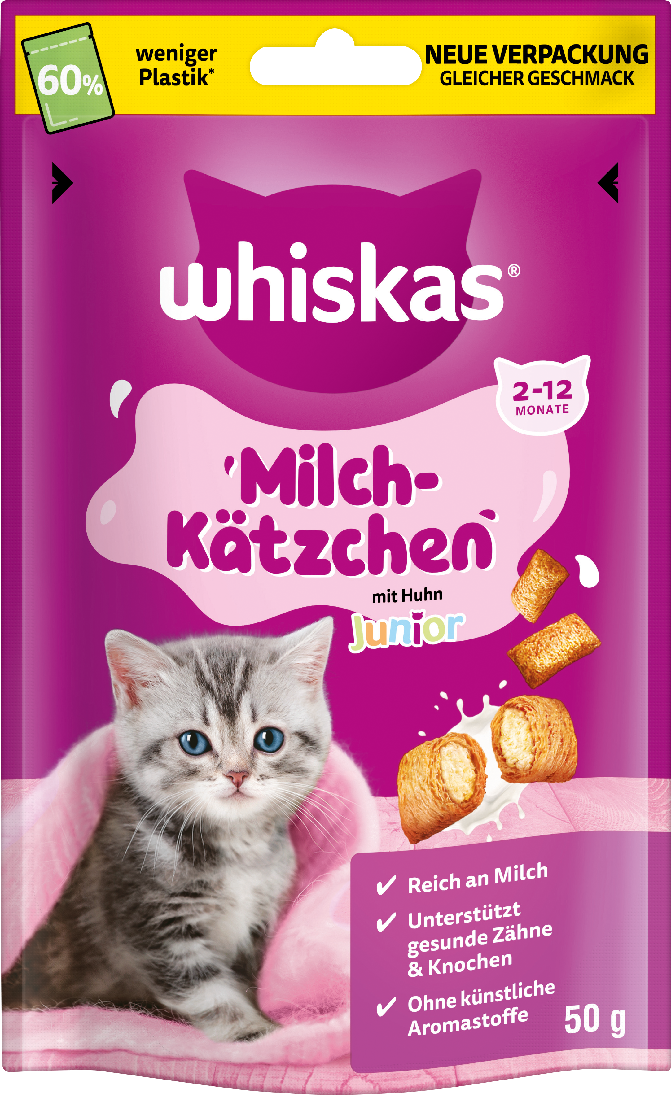Chcete svému koťátku dopřát chutnou odměnu? Whiskas Mléčný Junior Snack s kuřecím je ideálním doplňkem stravy pro Vaše malé zvířátko. Byl speciálně vyvinut pro koťata ve věku od 2 do 12 měsíců.