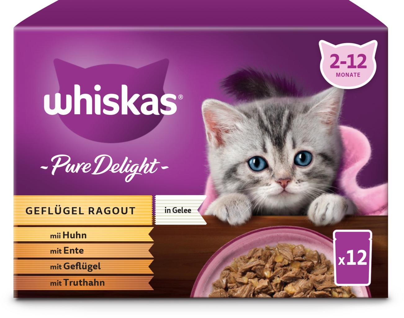Whiskas Multipack 12 x 85 g Pure Delight drůbeží ragú v želé Junior, 1.020 g
