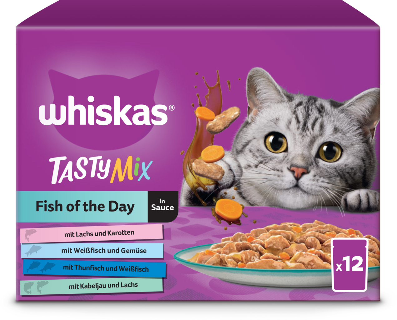 S Whiskas Tasty Mix můžete každý den potěšit Vaši kočku novou chutí. Jaká ryba to bude dnes? Losos, bílá ryba, tuňák nebo treska? Nebo Vaše milovaná kočka upřednostní zdravý zeleninový doplněk v podobě mrkve či hrášku? Nabízíme je v různých kombinacích: