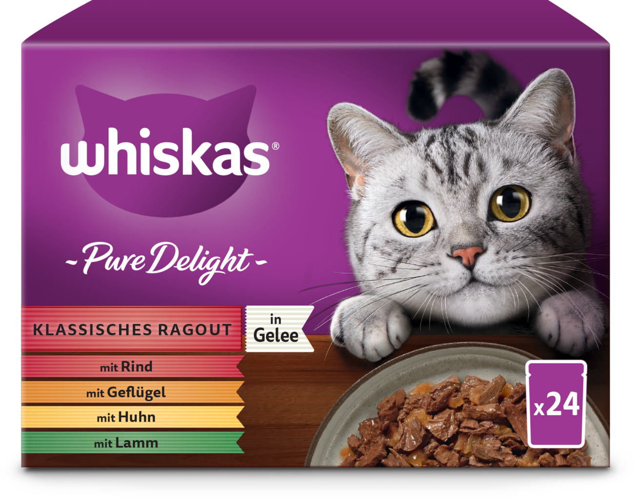 Whiskas Multipack 24 x 85 g Pure Delight klasické ragú v želé, 2.040 g