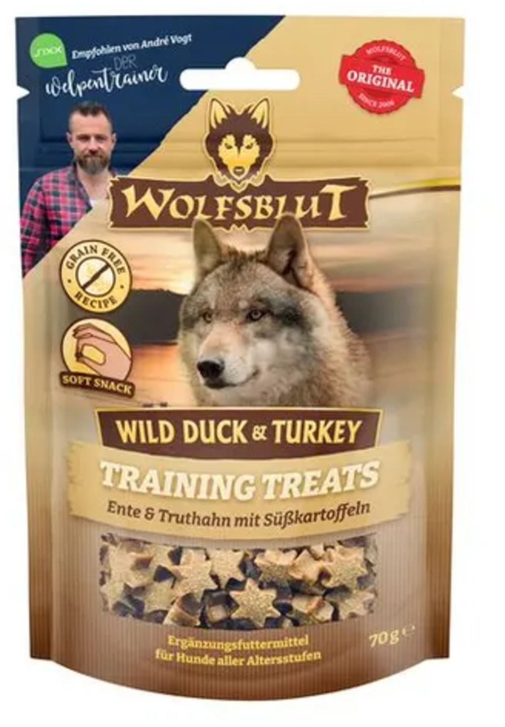 WOLFSBLUT Pamlsek pro psy Wild Duck & Turkey Training Treats, 70 g 80,00 Kč (1 142,86 Kč / kg)